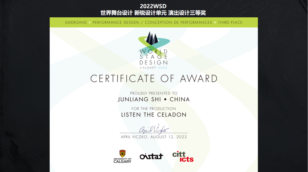 中国大部分参展的舞台设计者同样是因为国内疫情影响,非常遗憾地没能亲自到达现场参展。本人作品瓷乐“听瓷”入围新锐设计师单元并获得演出设计三等奖。在今年五月初通过邮件告知WSD组委会,由于国内的疫情影响作出放弃到达现场参展的艰难决定。同时,让我感触较深的是面对全球范围的疫情,WSD组委会似乎早有预案。没过几日就给我发送了2022WSD网上虚拟数字展厅的计划,并通过一系列的网站技术指导、网络会议,使得我们不同国籍无法到达现场的60多个参展作品,以另外一种更为自由的空间展陈方式,能够全面展示给全球各领域爱好戏剧的舞美同行交流与分享。