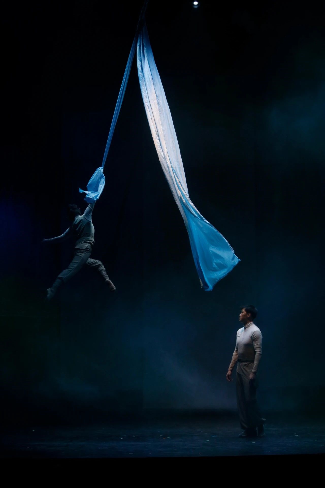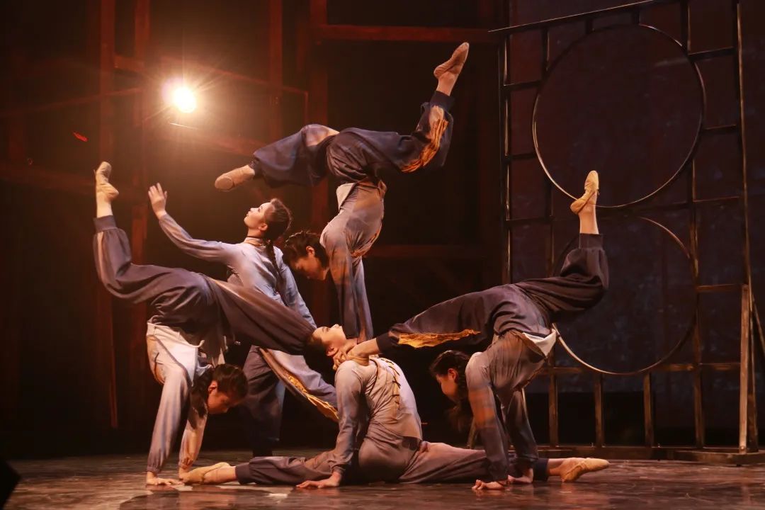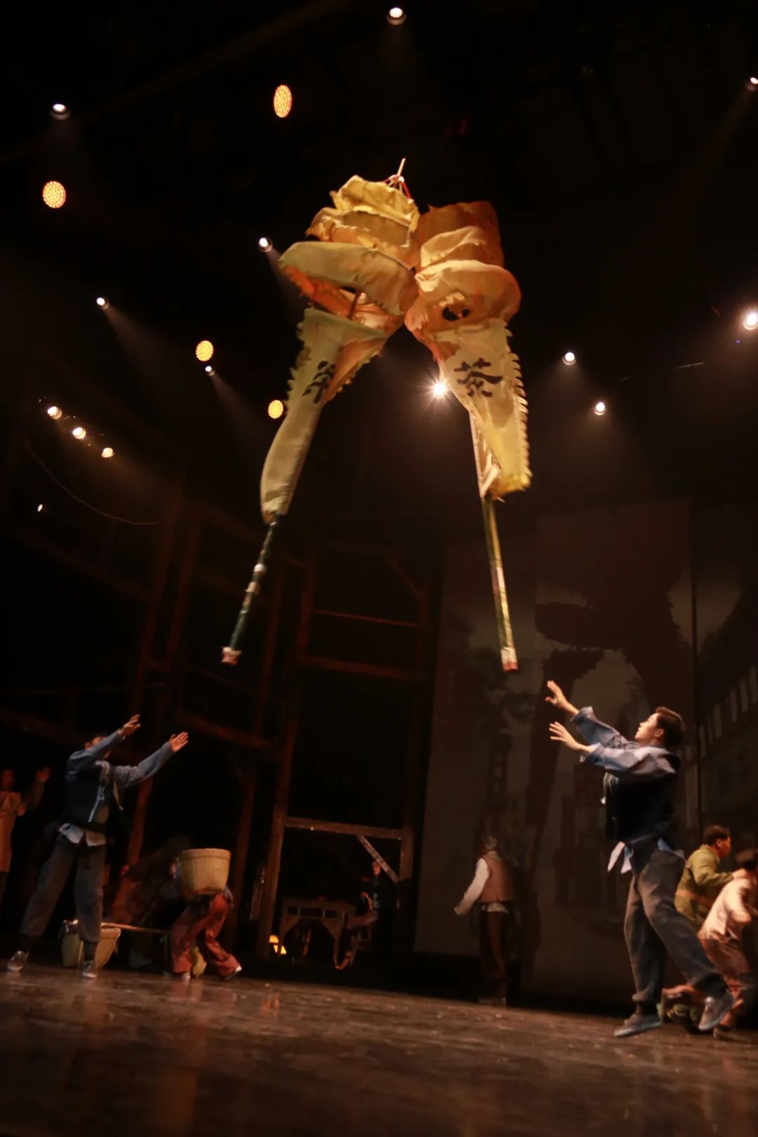 重要的是,编导们并没有忽略杂技作为突破人体极限的造型艺术的本体特色。剧情的设定与杂技的安排结合得极为巧妙和妥帖,将杂技的本体特色与剧情的需要做了高度的融合,做到了内容与形式的完美统一。编导根据杂技艺术自身特征来设置相关情节,如以爬杆来表现地下党员与反动派的周旋过程,以走软钢丝表现疯老头传递情报时的惊险与谨慎,以中幡和舞狮来表现市井民间的欢快情绪,以空竹来表现梦境中的轻盈欢快,在描述狱中斗争时,采取正反角色空中绸吊的形式,再配以激昂的音乐,展示出互相斗争的场景。这些杂技表演以情带戏、以情显技,高度符合剧情的需要,既没有单纯地流于炫技,也没有因情节需要而损害杂技艺术的本体特征,同时还有效地起到了引导剧情节奏、调节观众情绪的作用。