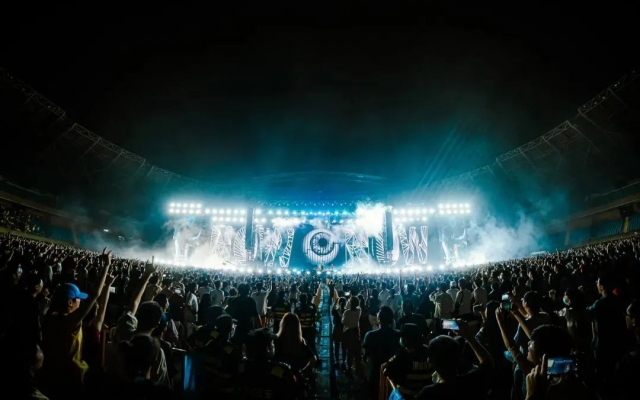 2020年,疫情爆发,演唱会被迫暂缓;去年10月,升级体育场演唱会新计划又被疫情打破,遗憾延期,中间艰难坎坷无数,在经历了长达2年半的漫长等待,他们终于王者归来! 今年7月,「我们最好的时光就是现在」巡回演唱会苏州站正式重启回归,开票28秒全部售空。 8月20日晚,新裤子经过重重波折终于“魔咒”终于迎来了第一场万人演唱会,三万乐迷相聚在苏州,一起见证了新裤子在体育场规格的现场演出,爆发出的无与伦比的旺盛生命力。 新裤子做到了。 这是中国独立乐队第一个拥有体育场规格演唱会的项目,这也是疫情背景下国内第一个线下超过3万人的演唱会。同时新裤子这场演出开创了国内摇滚演唱会突破3万人的历史记录。 作为今年新裤子普通的首场演唱会,这场苏州演唱会一点也不普通。从场地人员设备的大量投入,再到各类高新技术的使用,只为打造一场新裤子美学盛会。 丰富多姿的视觉呈现 本次“我们最好的时光就是现在”体育场演唱会,是对新裤子成军26年的一次“全景式”的呈现。在多方专业团队的