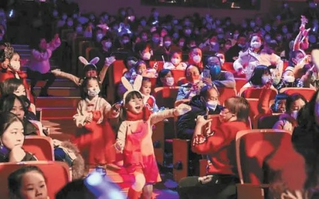 惊险刺激的杂技表演、经典的戏曲曲艺剧目、耳熟能详的民族音乐会、生动有趣的儿童剧和木偶剧……这个春节假期,北京演艺集团旗下九家文艺院团共推出36台剧目81场演出,陪伴近3万观众在剧场里过大年,同时在线上进行的26场演出吸引了近3000万人次观看,迎来兔年演出开门红。 《金牌杂技闹新春》中上演今年央视春晚《勇往直前》的“同款”男子集体车技节目《逐风者》 儿童舞台剧《卡酷大计划-飞跃兔王星》 春晚同款节目引爆杂技舞台 大年初一至初三,中国杂技团连续3天在保利剧院上演《金牌杂技闹新春》。这台演出荟萃了中国杂技团七十余年来享誉世界舞台、拿遍海内外大奖的精品节目,特别是今年央视春晚《勇往直前》的“同款”男子集体车技节目《逐风者》,赢得了观众经久不息的掌声。演出前,演员们特地到大堂与观众互动,观众与装扮成“财神爷”“卯兔宝”形象的演员合影,讨个新年好彩头。剧院大堂里同时还有老北京翻花手艺人现场展示传统手艺,更有冰糖葫芦、棉花糖等传统年味小吃奉上,大人孩子流连忘返,过年的喜庆洋