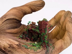 ▲ 眼前的这组作品, 乍一看像是木雕, 但让人难以置信的是, 这些都是手工陶瓷雕塑作品。 而那些木纹、甲壳虫等, 也都是用粘土制作的。 ▲ 制作这些陶瓷雕塑作品的, 就是上面