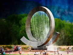 用帆船的骨架,打造出一个另类的帆船喷泉。
