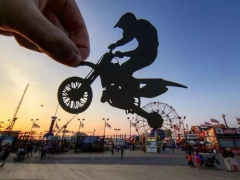 用黑色的剪纸裁剪出 各种形状的人物、动物、事物 与拍摄的建筑景物互动 结合出一组组生动幽默的画面