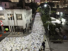 10000多本书直接铺在了蜿蜒的道路上,就好像这条路本来就是书做成的,观众踩入这条“书的河流”,只要有看中的或者喜欢的,都可以随手带走。