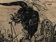 panther,2013, 录像 Video, 1′50″。这是在北京一个酒吧的即兴创作:在播放着快节奏DJ音乐、灯红酒绿的环境里;在舞台中心我想象自己像一只美洲黑豹,并倒立俯卧在森林。