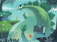 他的画里全都是孩子们喜欢的内容:丛林、太空、骑士、海盗、恐龙......引人入胜的故事搭配明快鲜艳的色彩,风趣幽默的场景充满了欢乐气氛。