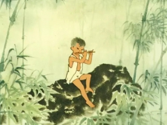与一般的动画片不同,水墨动画没有轮廓线,水墨在宣纸上自然渲染,浑然天成,角色的动作和表情优美灵动,泼墨山水的背景豪放壮丽,柔和的笔调充满诗意。